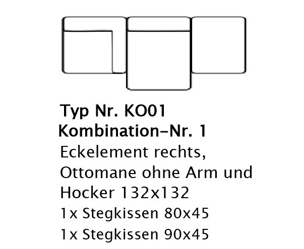 Hocker, Eckelemente, Kombinationen mit Armlehnen, ein Ottomane, Recamieren, 2-Sitzer, 3-Sitzer und Wohnlandschaften.